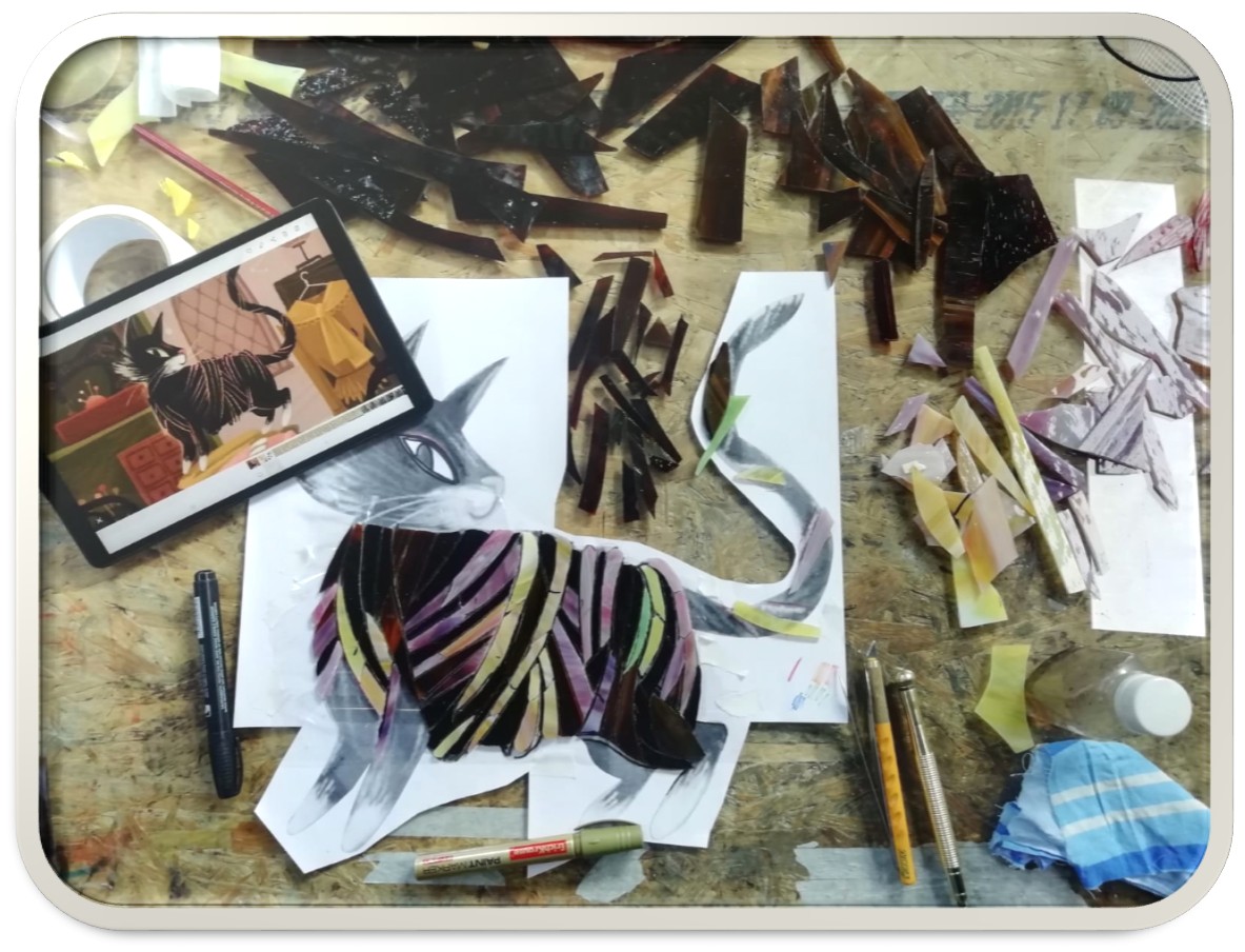 Далее мы передали изображения в студию витража «Индиго», которые создали для нас красочные мозаики из колотого стекла. И всех сказочных персонажей мы разместили на улицах микрорайона Затон.