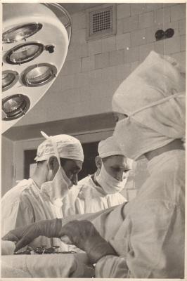 Операция в медсанчасти комбината «Химволокно»: хирург – Смирнов Константин Александрович, заведующий хирургическим отделением; ассистент – Андреев. 1961. Фото из фонда АГКМ