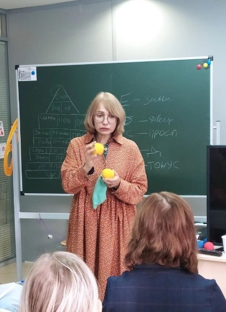 В рамках нейрофестиваля на занятии Новиковой Любови «Использование нейропсихологических знаний в логопедической практике» были показаны интересные приемы для работы с вестибулярной системой для распознавания звуков, приемы для ориентации в пространстве, игры для ускорения и смены направления, игры на межполушарные связи, на ритмы.