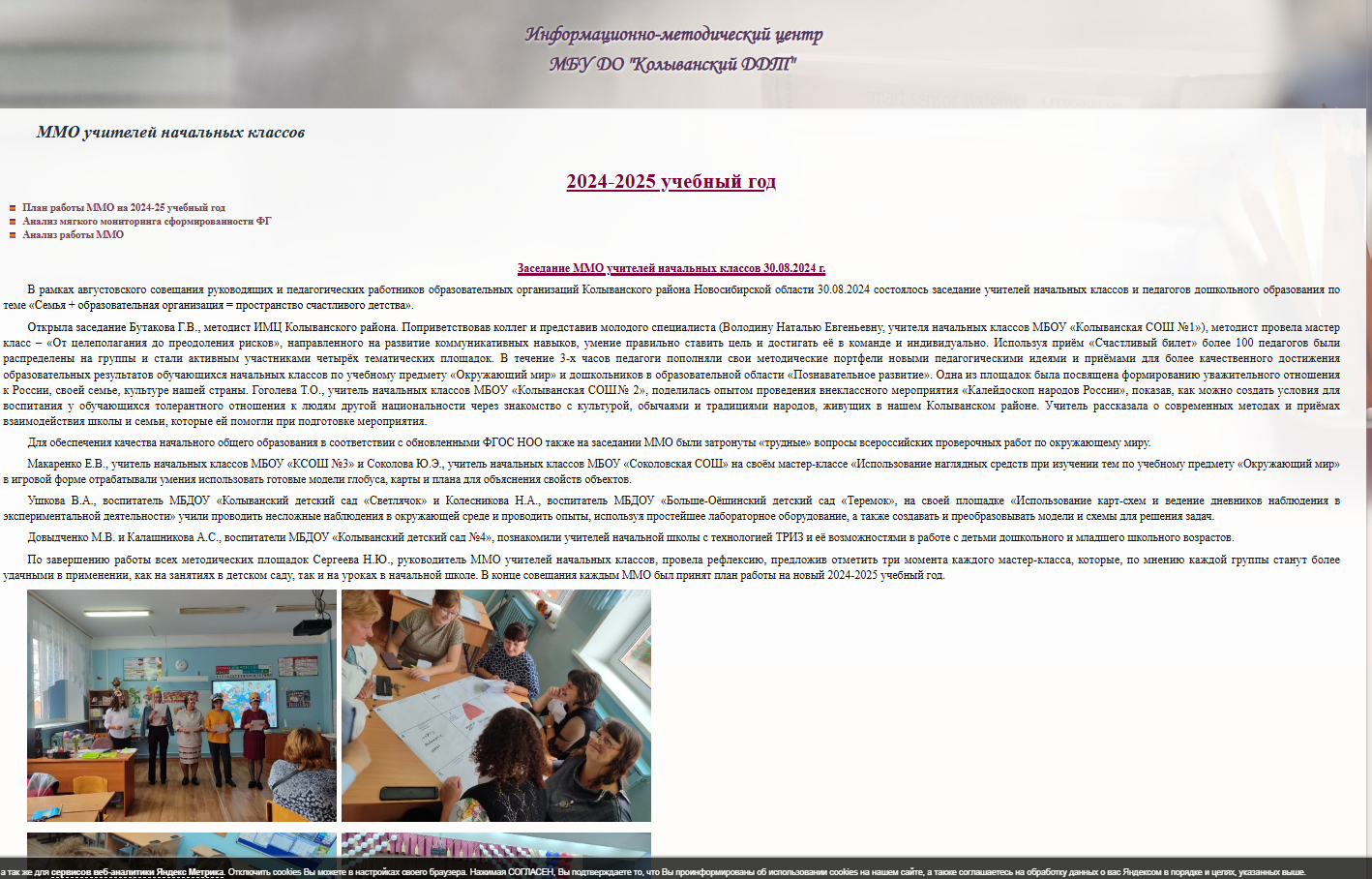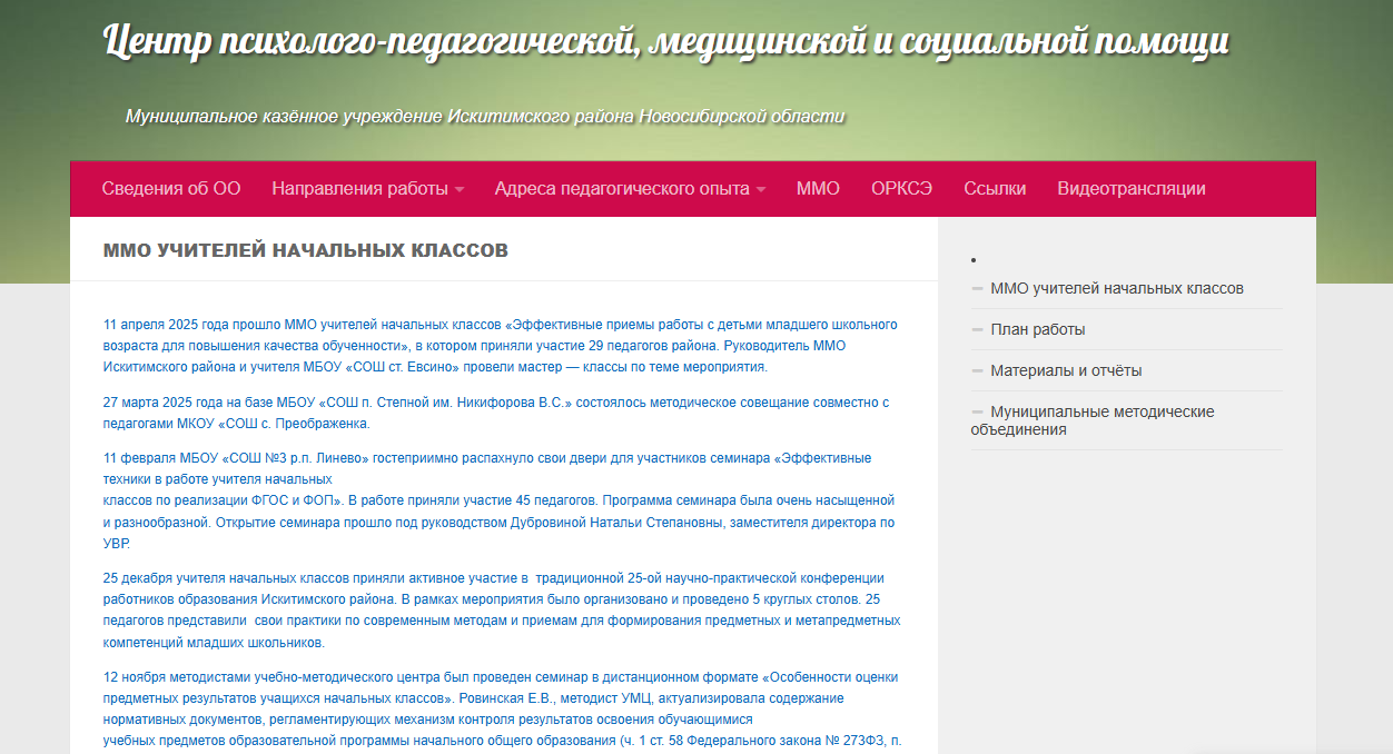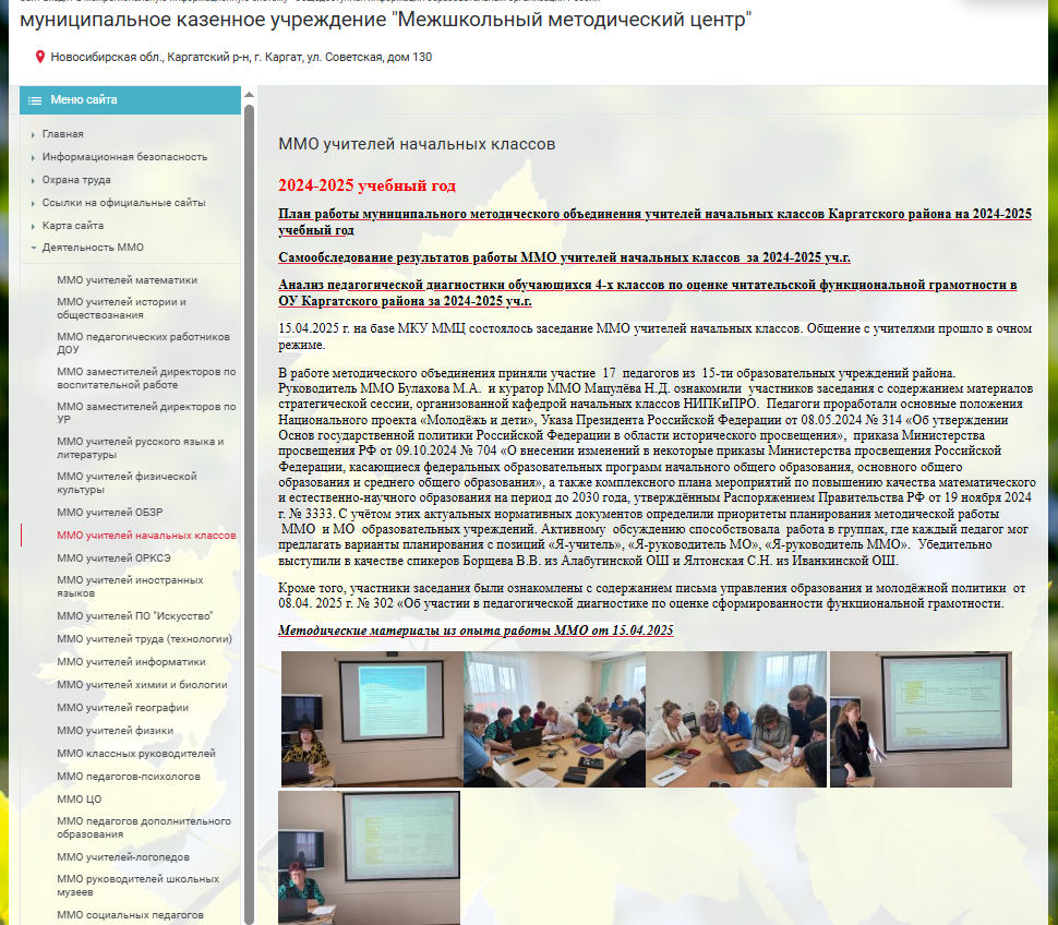 Анализ проведенных мероприятий показал, что в ряде районов, таких как Куйбышевский и Искитимский, деятельность методических объединений учителей (ММО) была ограничена исключительно ознакомительными мероприятиями, без проведения Мастер-классов. Выложены лишь материалы сессий, предоставленные кафедрой начального образования НИПКиПРО (рисунки 5–76. Такой подход снижает эффективность организационных мероприятий и препятствует полноценному обмену опытом между участниками образовательных сообществ.