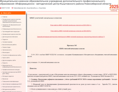 В целом, материалы о методической работе в муниципалитетах в части деятельности ММО учителей начальных классов представлены на официальных сайтах достаточно подробно. В перспективе мониторинг сайтов будет продолжаться, поскольку представление хода и результатов методической работы должно быть открытым и системным.