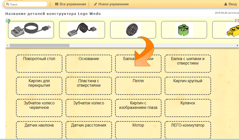 3. Онлайн-упражнение «Название деталей конструктора LEGO Wedo».