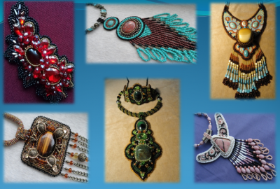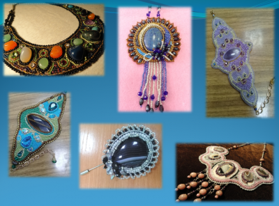 При выполнении бисерных работ мы используем кабошоны из поделочного камня (яшма, флюорит, аметист, агат, тигровый глаз). Работаем бисером, бусами и фурнитурой премиум качества.
