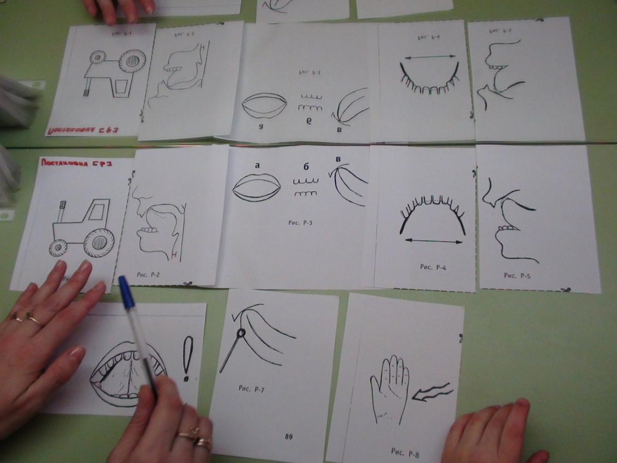 На основном этапе при формировании произносительных умений и навыков использую готовые модели основных артикуляционных укладов, (модели артикуляционных укладов В.М. Акименко, комплекс упражнений «Дерево» Е.Ф. Архиповой и др.).