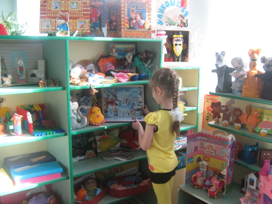 Для реализации самостоятельной деятельности в каждой группе ДОУ предусмотрен уголок «Театр», оснащенный «персонажами» для пальчикового, кукольного, настольного, теневого театров и другой атрибутики, необходимой для постановки спектаклей.