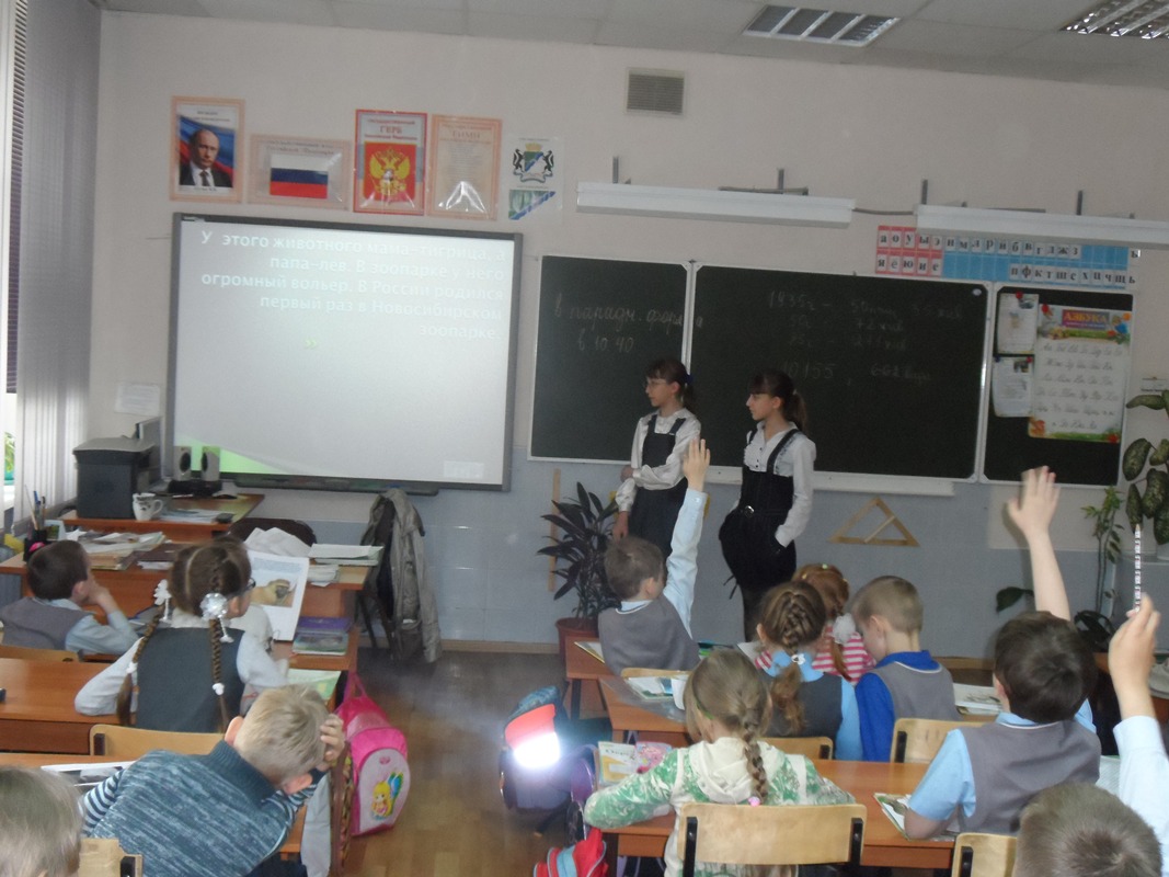 Впервые в заседании клуба приняли участие дети двух групп одновременно, младшие школьники и среднее звено на равных участвовали в мероприятии. В начале нашего путешествия Лыткина П.В. рассказала историю Новосибирского зоопарка, о его истоках, современных достижениях. Школьники очень сопереживали, узнав, что наш зоопарк подвергся пожару и многие животные погибли в огне. Первоклассники с интересом узнали, что работники зоопарка прикладывают огромные усилия для разведения редких животных и обмениваются животными с другими зоопарками мира, и даже выпускают их в дикую природу для сохранения видов.
