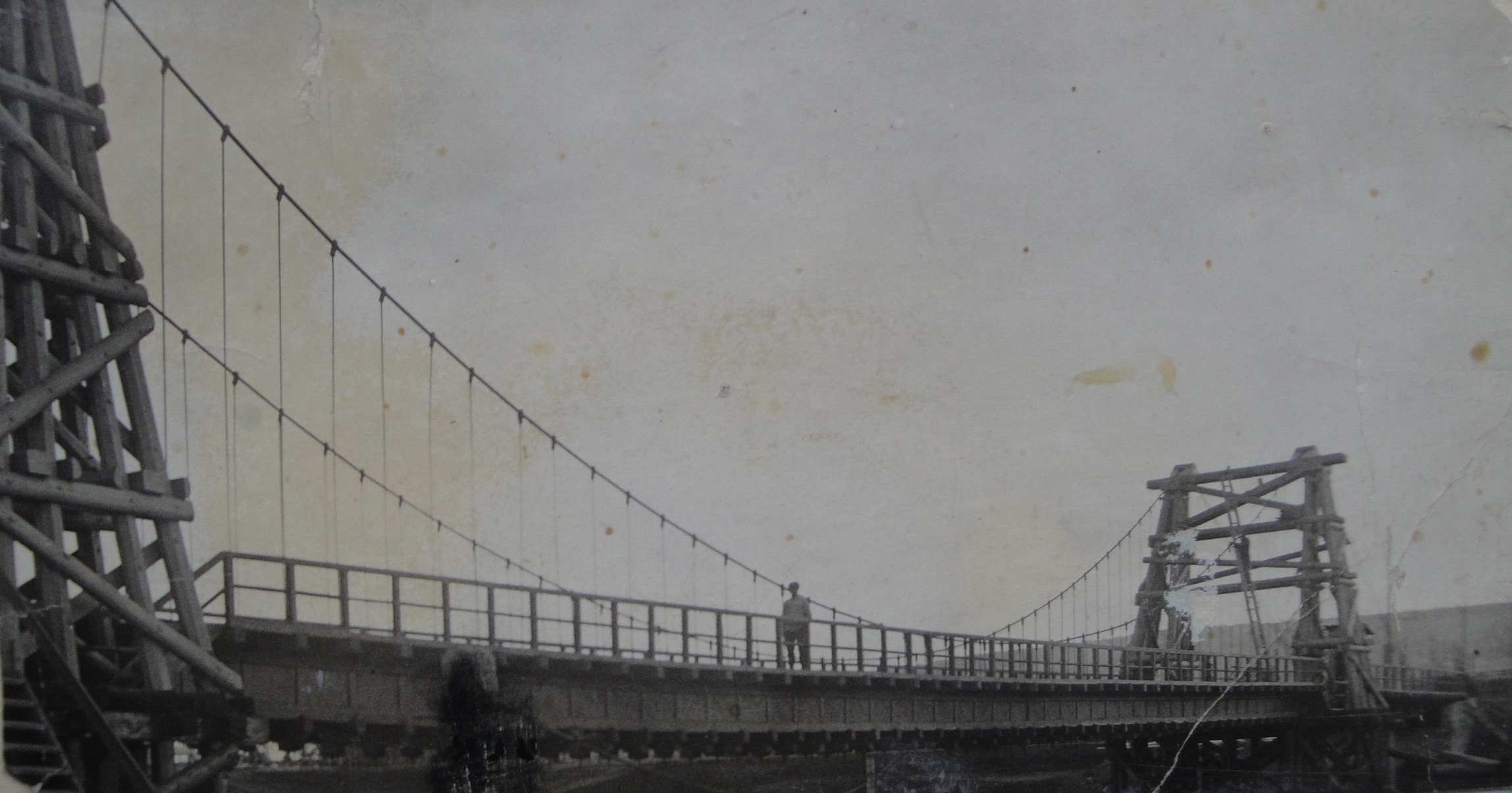 Однако и за столь короткий срок сделано сотрудниками ОПКБ было немало. Так, 24 марта 1931 года В.Ф. Савельев приехал в поселок Араличево. Далее цитирую его «Докладную записку» на имя начальника Проектно-Строительного Бюро №14 (в документах встречается и такое написание): «…совместно с товарищем Страховым приступили к проектированию висячего моста через р. Абу. В тот же день был приглашен в Араличево в качестве консультанта американский инженер фирмы «Флейн» г. ГЛЭН, который эскиз проекта моста одобрил, а именно: 1. Тип моста – висячий на 2 канатах с каждой стороны… ». Темпы строительства были очень высокими и, вероятно, через месяц-другой мост был пущен в эксплуатацию. Так в Кузбассе появился оригинальный висячий цельнодеревянный мост. Длина его составляла 75, а ширина 5 метров, что немало для такой конструкции.