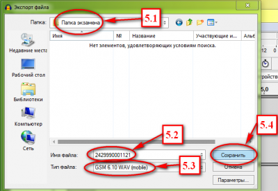 5.3. Открыть «Тип файла»: GSM 6.10wav (mobile) – только ПРИ НАСТРОЙКЕ