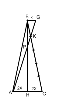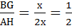 3. Если BG = х, то АН = 2х (в равнобедренном треугольнике высота АН делит основание АС пополам)
