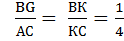 1. Продолжим АК до пересечения с BG, где BG||АС.