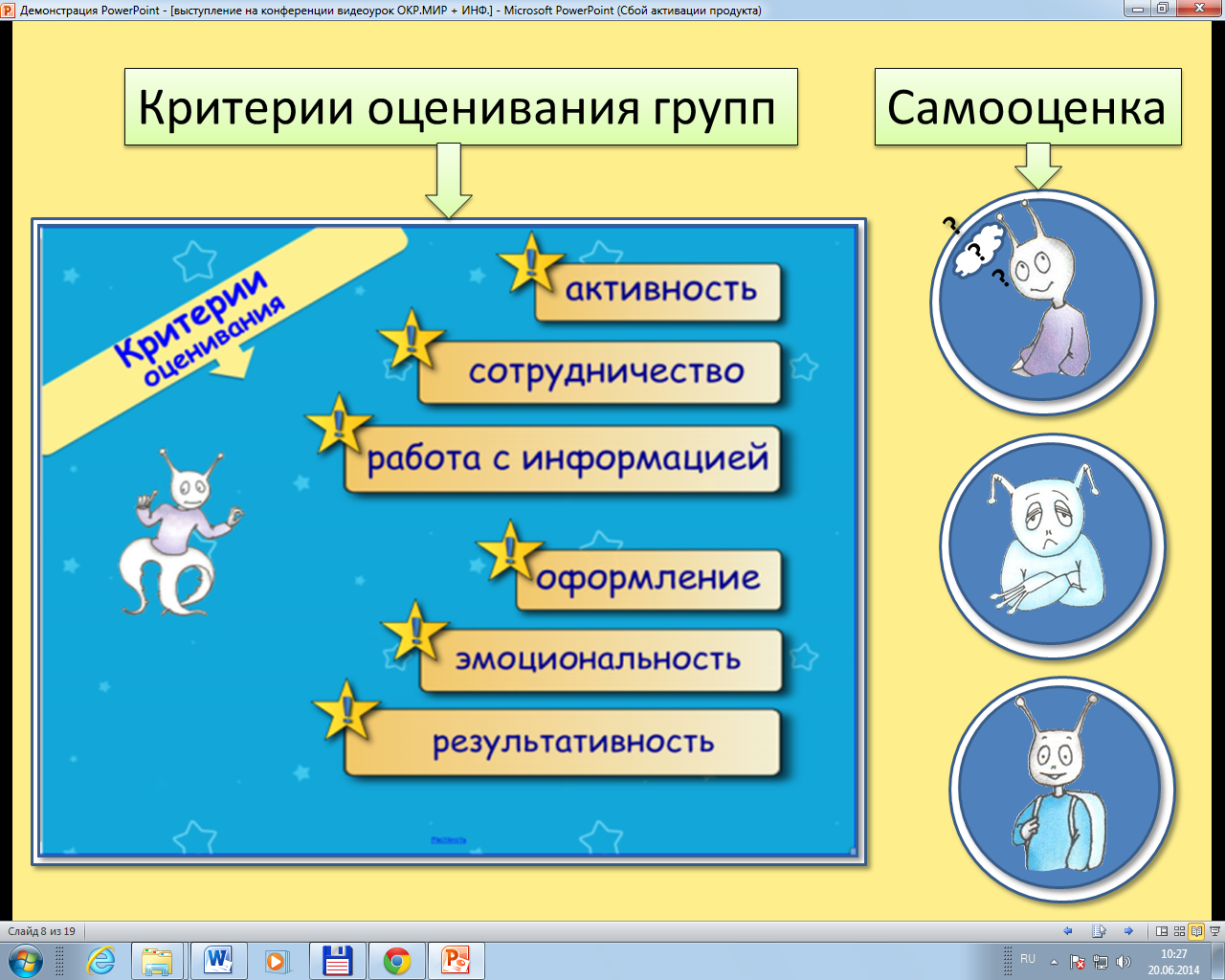 Обратив внимание на наши наблюдения, попытавшись принять их к сведению, и соблюдая определенные правила при создании мультимедийных презентаций, педагоги получат возможность более эффективно представлять свой опыт и смогут продемонстрировать свою профессиональную и ИКТ-компетентность. Это имеет особое значение в связи с наличием соответствующих требований в должностных квалификационных характеристиках учителя (Приказ Минздравсоцразвития № 761 Н от 26 августа 2010 года) и в Профессиональном стандарте педагога.