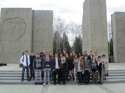 Дорогие гости стоят у крыльца нашей школы. Городские школьники провели для гостей экскурсию по школьному музею и школе. Классный руководитель уже 10-го класса Елена Евгеньевна Матренина подготовила с ребятами рассказы об интересных классных делах. Гости попали на концерт, посвященный Дню Победы, который проводила Ирина Николаевна Попова, завуч по воспитательной работе нашей школы. Большой автобус забрал хозяев и гостей на экскурсию по городу Новосибирску. Особое внимание экскурсовод уделяла высшим учебным заведениям. Посетили Мемориал Славы и возложили цветы у Вечного огня. Экскурсия завершилась в Музее города Новосибирска.