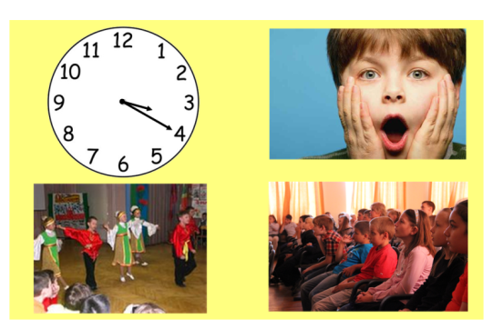Например: (На доске слайды иллюстрирующие ситуации.)
