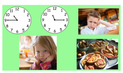 1 и 2 группы рисуют часы со стрелками, которые указывают разное время. Задание: записать цифрами время, указанное на часах.