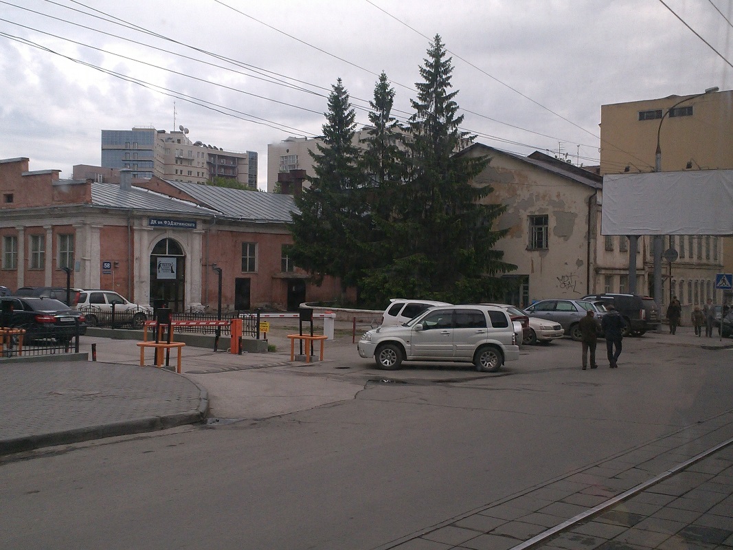 Обратите внимание, слева (по адресу - Серебренниковская, 16) располагается Государственный архив Новосибирской области, а справа мы увидим здание ДК им. Ф.Э. Дзержинского, в котором сейчас размещается Театр Антрепризы актеров Новосибирска.
