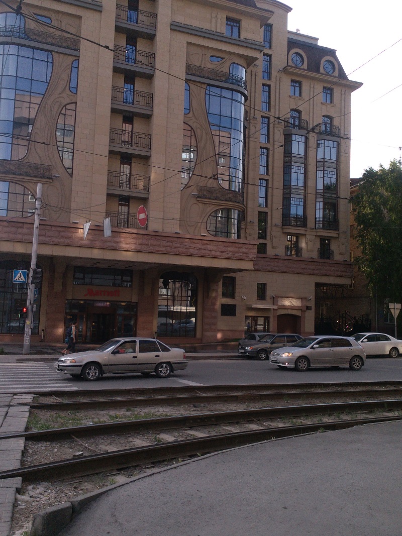 Об этом месте можно рассказывать очень долго, а сейчас мы с вами находимся около гостиницы «Марриот отель» (слева). Это очень красивое здание появилось совсем недавно в нашем городе.