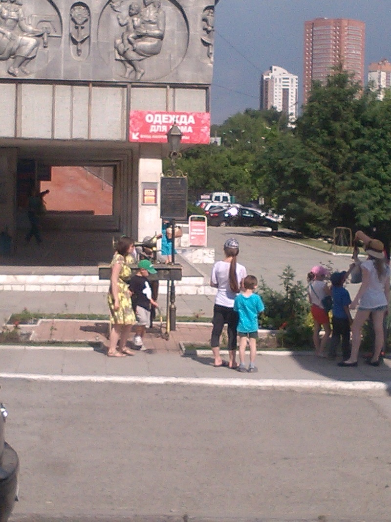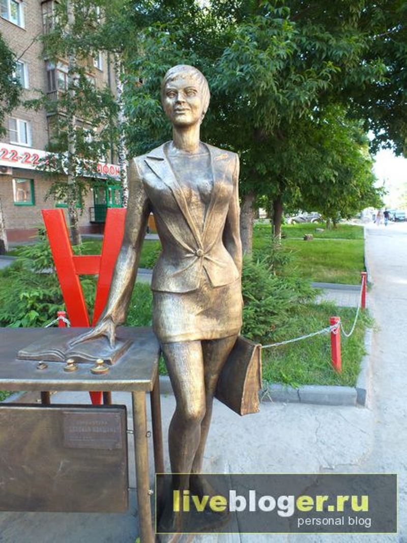 Через дорогу (слева от трамвая) – Памятник деловой женщине.