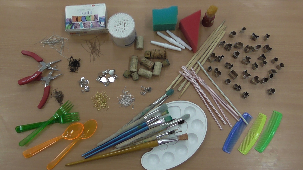 Параллельно я занималась оснащением предметно-пространственной развивающей среды. Нетрадиционное рисование привлекает своей простотой и доступностью, раскрывает возможность использования хорошо знакомых предметов в качестве художественных материалов. Например: зубные щетки, поролон, пенопласт, свечи, трубочки для коктейля, ватные палочки, нитки, стеки, вилки, ложки, соль, крупы, мука, клей и т.д.