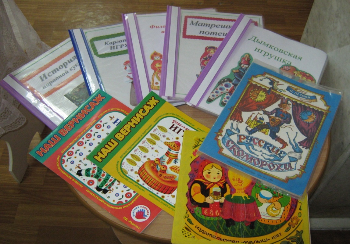 В группе было проведено несколько детских проектов по расширению знаний о старейших народных художественных промыслах России, по изготовлению игрушек. Очень захотелось подвести итог тому, с чем дети знакомились в течение нескольких лет, посещая наш детский сад, и, прежде всего, мы составили план, по которому началось ознакомление: