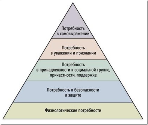 Американский психолог Абрахам Маслоу разработал теорию, согласно которой потребности человека можно разделить на пять основных категорий (рис. 1)[6]: