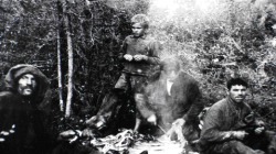 8 группа: «Меченый». Эту книгу составили две ранее не издававшиеся повести писателя. «Меченый» – о стае волков, о драматической судьбе сибирской природы; «Поиск» – о трагических событиях в экспедиции, застигнутой лесным пожаром, и в поисковом отряде, отправившемся на её спасение. Повесть о чести и героизме советских людей. Ни одна из них ещё не выходила до этого отдельным изданием. Лишь часть из повести «Поиск» была опубликована в 1975 году в журнале «Вокруг света» № 2 отдельным рассказом под названием «Дым над Удыгином»… (демонстрируют рисунки к повести).
