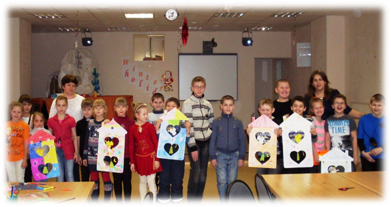 Творческое задание, предложенное в ходе третьей части (Crafting class) явилось продолжением тематики языкового дня. Педагог-ведущий предложила школьникам создать «Дом для ангела». Используя специально заготовленные макеты, участники мероприятия декорировали дом для ангела с помощью имеющихся заготовок и собственной фантазии.