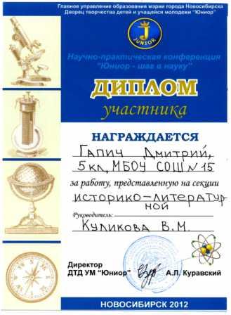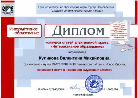 Здесь же можно отметить моё личное участие в конкурсе «Новосибирск от А до Я», ряд публикаций и участие в конкурсах на лучшую статью в электронной газете «Интерактивное образование».