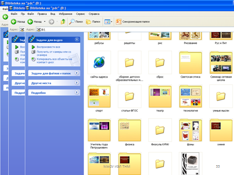 На слайде представлен скриншот Диска БИБЛИОТЕКА объёмом 250 Гбайт. В нём содержатся предметные и тематические папки.
