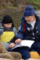 Согласно правилам техники безопасности в водных походах, мы обеспечили всех участников многодневного сплава спасательными жилетами, которые ещё к тому же прекрасно защищают от холодного ветра.
