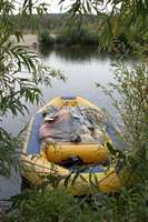 Заночевав на левом берегу Берди в районе деревни Кинтереп, мы надули рафт и на следующее утро, погрузив на него личные вещи и снаряжение, около 9 часов отчалили от берега. На корме бессменно находился капитан – Николай Николаевич, который правил судном. Володя сидел рядом и отмечал на карте курс судна и основные особенности русла реки и берегов, мимо которых проплывали.