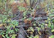 Примерно через полчаса сплава, мы причалили у места падения метеорита. Пришвартовав рафт у зарослей ивняка, стали подниматься по склону горы к кратеру. Дорогу нам всюду преграждали чудовищные завалы леса на склоне кратера, образованные при падении метеорита. Приходилось идти прямо по стволам деревьев, рискуя провалиться сквозь их сухие ветви, содрав кожу.