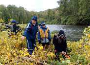Далее плавание прошло без особых происшествий. Около 14 часов мы причалили к берегу на обед. Как всегда разложили костёр для обеда и ещё один, побольше, для обогрева. Сварили картофель с тушёным мясом и овощами, прекрасно отобедали, обогрелись и поплыли далее. Около 18-00 пристали к берегу в районе деревни Старососедово, помыли рафт, дружно и весело спустили его.