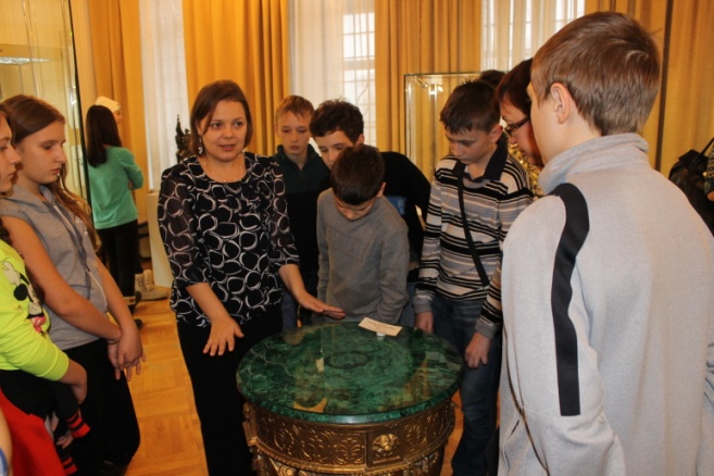 Все залы: Бажовский, малахитовый, русского серебра – привели нас всех в восторг! Просто поразительно, что можно сделать огромную картину или географическую карту из камня, настолько идеально подобрать его узор! Мы смотрели на экспонаты музея, удивляясь таланту мастеров камнерезов, граверов, ювелиров. Все очень красиво!