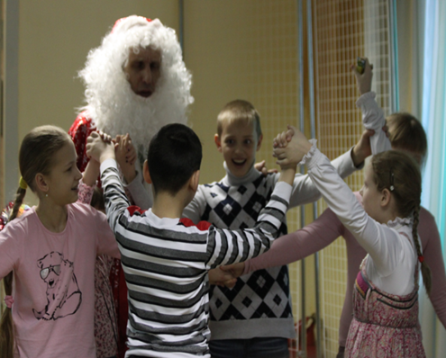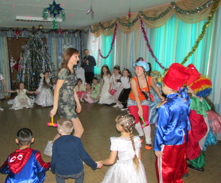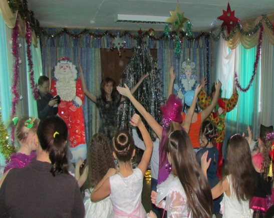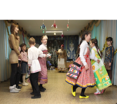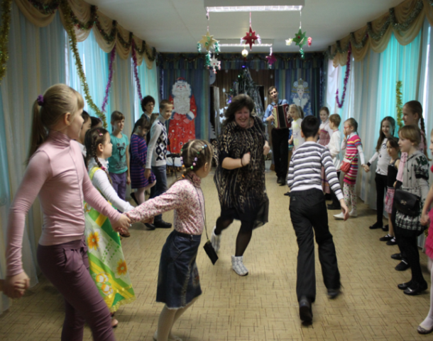В игровую программу включены новогодние хороводы (традиционные и современный флешмоб), народные заигрыши (народные игры «А у Дедушки Мороза», «Ручеек»,«Ткацкий станок», «Мышеловка»), веселые эстафеты («Наряди елку», «Подарок Деда Мороза», «Перезагрузка»).