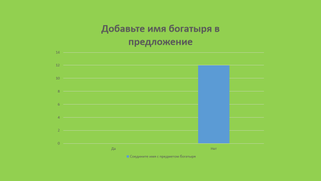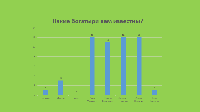 Участники группы отметили, что были очень удивлены полученными данными. Больше всего их удивило то, что даже учителя не владеют полной информацией по теме «Русские богатыри». Исследователи сделали вывод, что эта тема требует дальнейшего изучения и освещения.