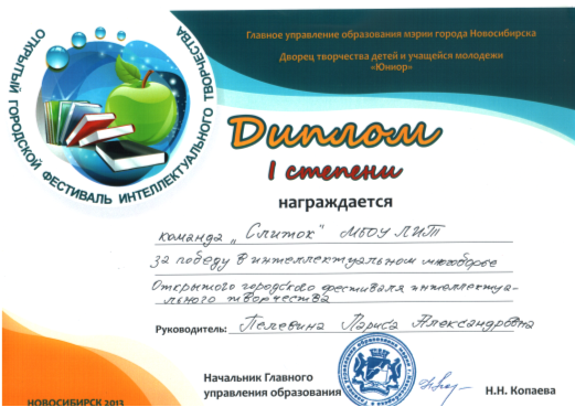 Опубликованы статьи в газете «Новая Сибирь»,в журнале «Лицеист»,в сборнике материалов VI городской НПК «Информатизация муниципальной системы образования в контексте требований ФГОС».