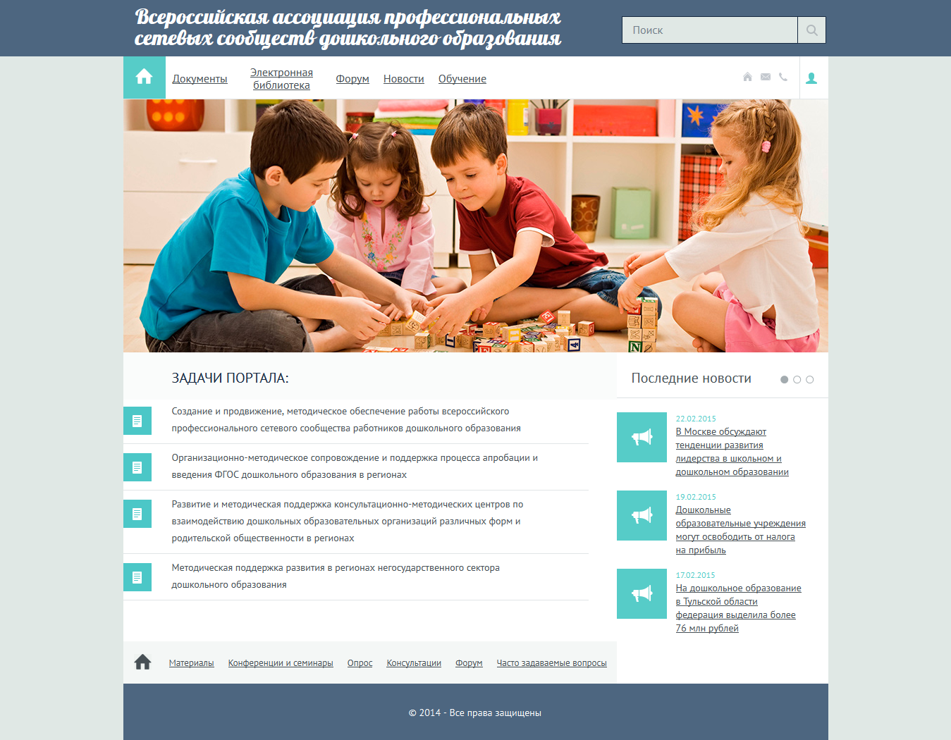 Внедрение интернет-ресурса «Всероссийская ассоциация профессиональных сетевых сообществ дошкольного образования» http://doshkol-edu.ru – актуальная задача, решение которой позволит системе дошкольного образования отвечать на новые требования к образовательной среде. В сфере дошкольного образования наблюдается стабильная тенденция к использованию информационно-коммуникативных технологий (ИКТ) в администрировании, однако замечена слабая тенденция к созданию собственных информационных образовательных сред с применением ИКТ [1-3]. Это во многом связано с недостаточной технической оснащенностью дошкольных образовательных организаций, а также нехваткой специалистов, владеющих технологиями работы с ИКТ в данной области. В таких условиях, когда решение задач дошкольного образования сегодня уже невозможно представить без развития ИКТ, очевидна необходимость информатизации дошкольного образования, создания и внедрения централизованного государственного регулирования единой информационной образовательной среды, общих информационных образовательных систем.