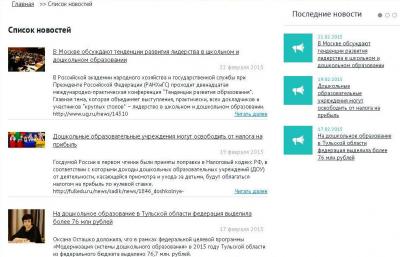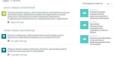 Информационно-новостной модуль. В данном модуле представлена информация о содержании портала, сетевом сообществе, целях и задачах сетевого сообщества, прогнозируемых итогах работы сообщества, а также информация о событиях в сфере дошкольного образования (см. рис. 2).