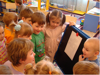 В ходе работы над портфолио группы мы вместе с родителями и специалистами собираем фотографии, сочиняем с детьми для них сопроводительные стихи и тексты, беседуем с детьми, рисуем, придумываем красочное оформление рубрик. Вместе продумываем темы и вопросы отдельных страничек портфолио.