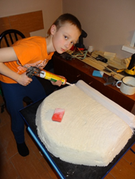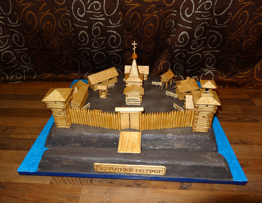 Накануне 300-летия г. Бердска мы решили создать макет Бердского острога. Узнали, что такое острог в сети Интернет. Выяснили, по какому принципу строились остроги в Сибири. Изучили историю возникновения Бердского острога в разных источниках – в книгах, электронных журналах, статьях. Взялся за создание макета ученик 3 А класса Писаренко Миша, вместе с папой. Они подобрали подходящие по свойствам и качествам материалы и сделали макет острога из деревянных брусков. С проектом Миша принял участие в НПК школьного, муниципального и общероссийского уровня и стал победителем.