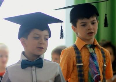 Фея. Я вижу, что вы молодцы, очень хотите в школу. И вы попадете в школу, если разгадаете тайну Карабаса-Барабаса. В самую трудную минуту вам помогут ваши родители и моя волшебная палочка.
