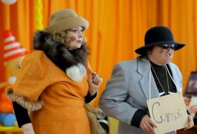 Со стороны родителей появляются Лиса Алиса и Кот Базилио.
