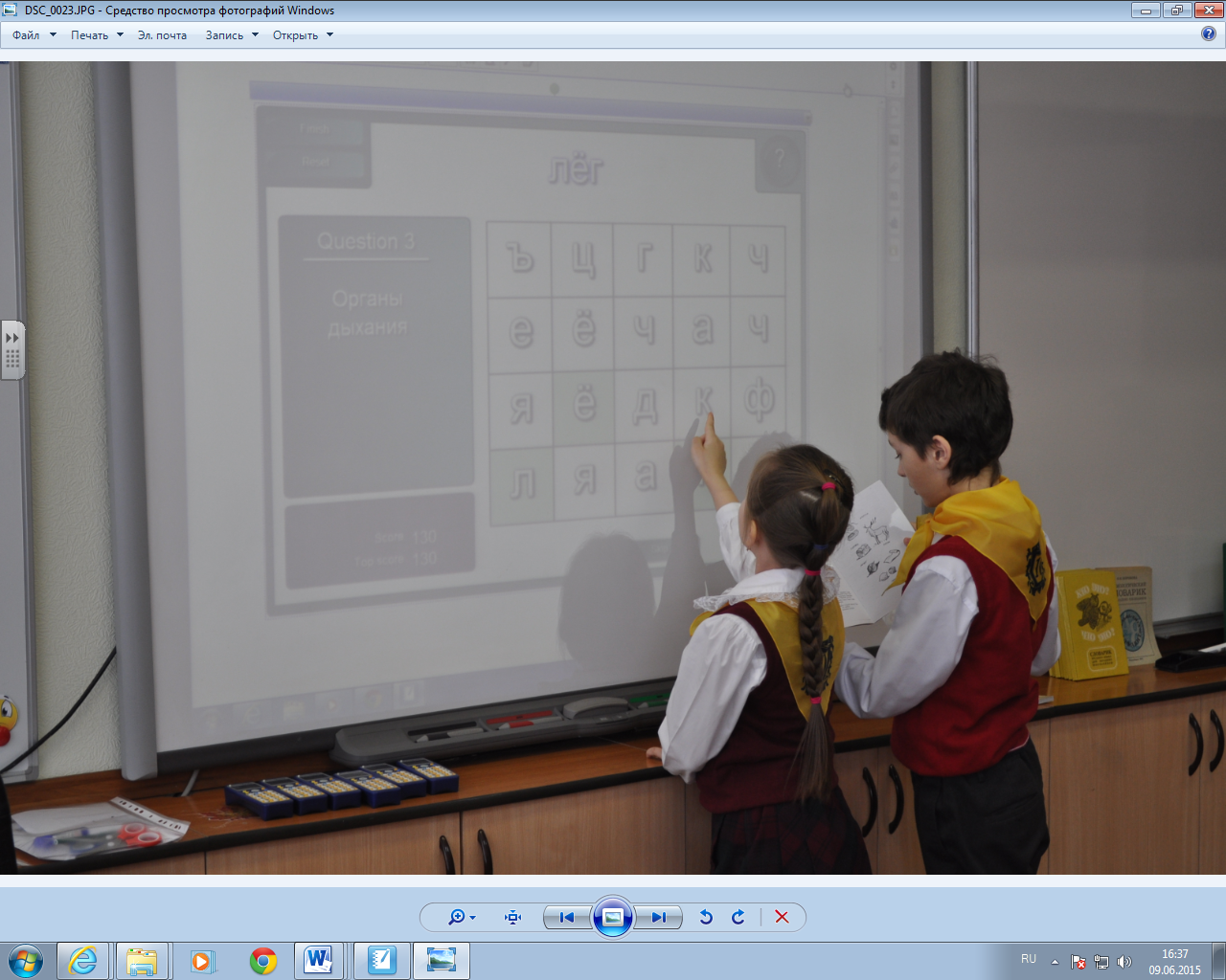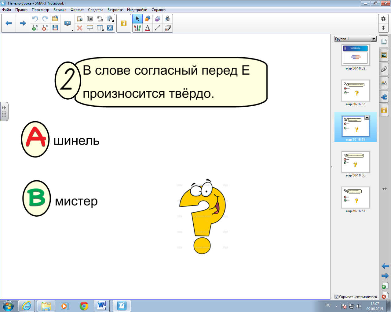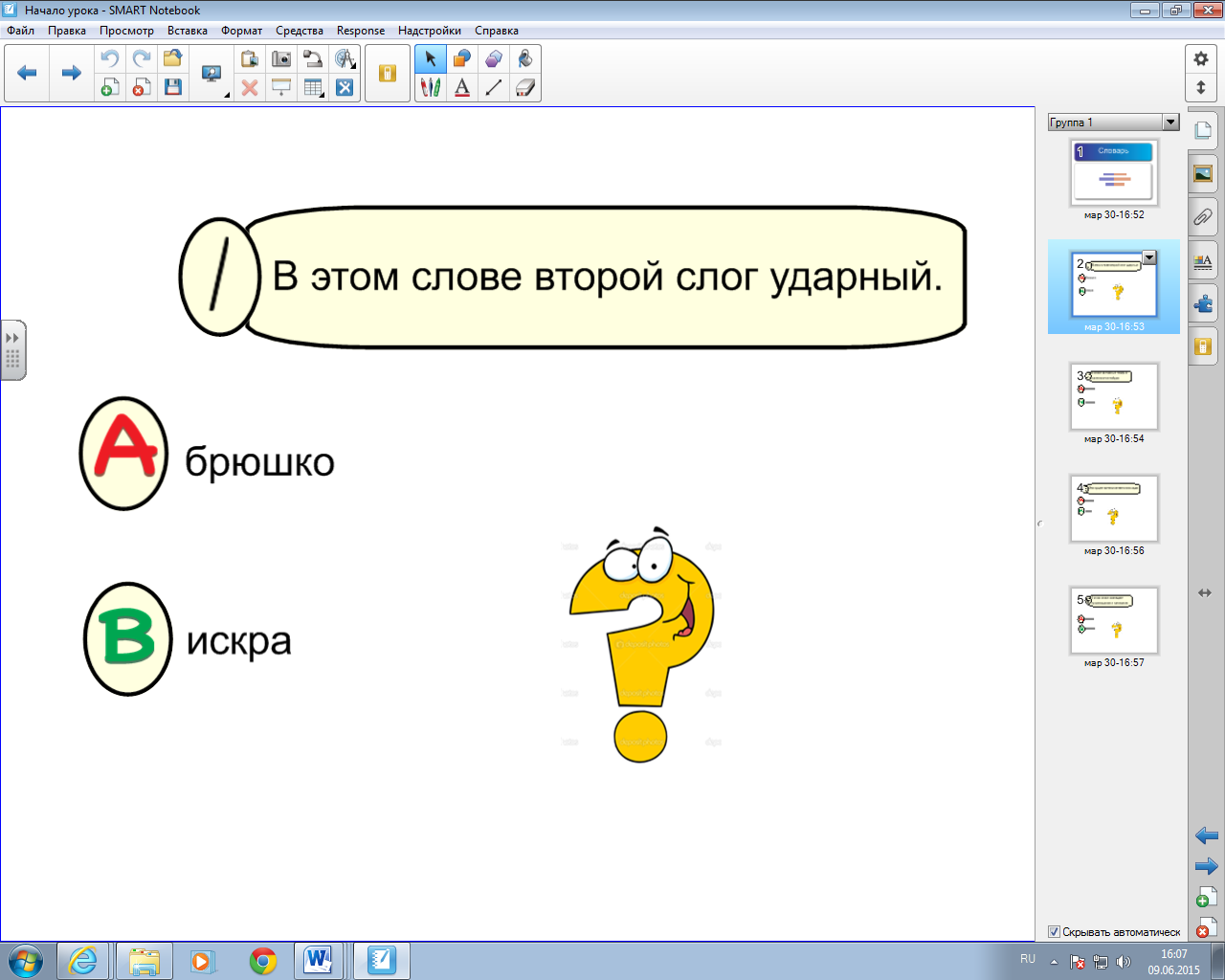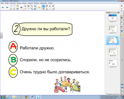 В качестве учебной литературы ученикам был предложен орфоэпический словарь «Учимся говорить правильно» авторов А.А. Бондаренко и И.В. Гурковой. Ответив на вопросы с помощью интерактивной системы голосования Senteo, дети самостоятельно определили, в каком словаре содержится данная информация.