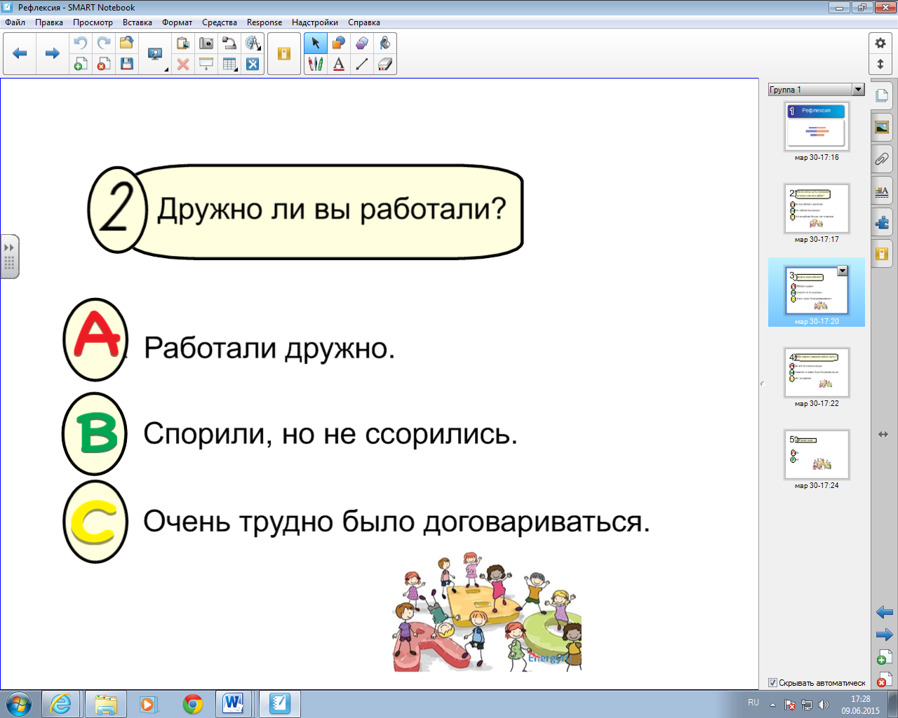 7. Самооценка работы в группах и оценка работы класса в целом.