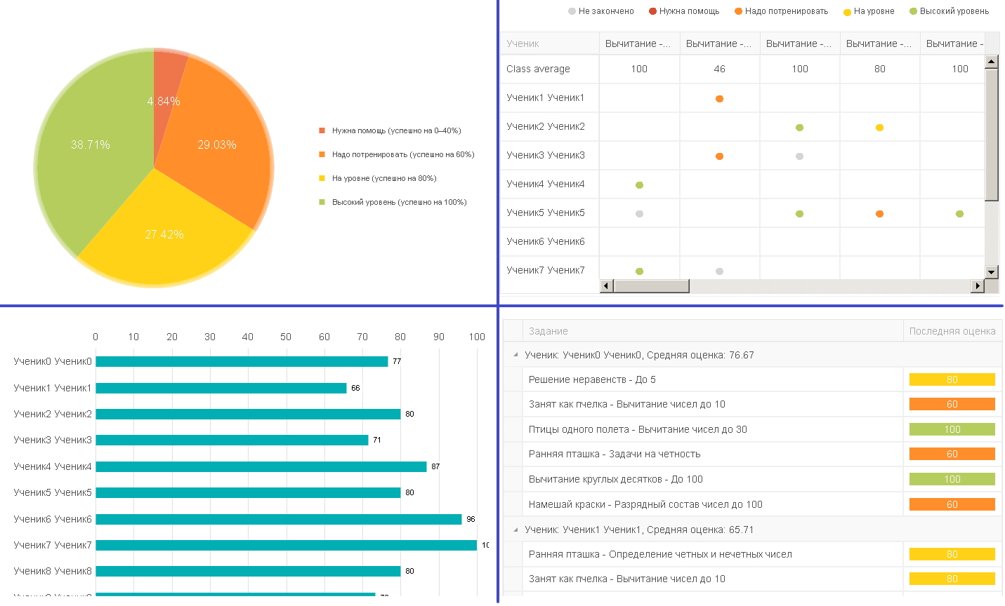 Рис. 2. Примеры отчетов Matific об успеваемости учеников