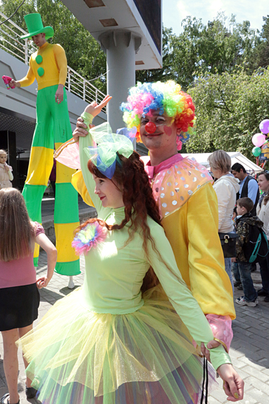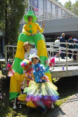 Праздник, посвященный 50-летию Центра детского творчества Советского района, состоялся накануне Дня защиты детей в Доме ученых. Даже небо было щедрым 31 мая – подарило нашим ребятам много солнца, тепла и красок. «Привет! С праздником!» – обращается к малышу трехметровый клоун Лёша.