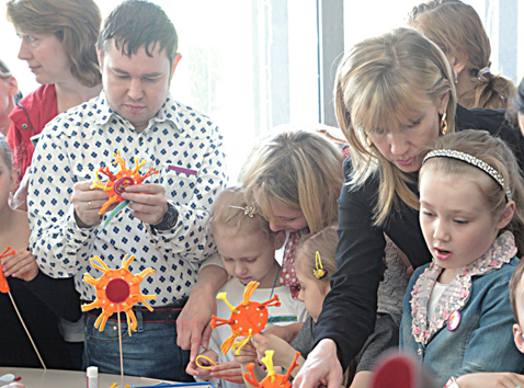 Девочки ходили с необыкновенным цветочным орнаментом на лицах. Это педагоги Центра творчества Е. Ковалева и А. Черных с помощью аквагрима украшали модниц изысканным рисунком. Мальчики сидели и стояли у шахматных столов: известный мастер древней игры В.И. Куликов консультировал: с чего начинать партию, как решать шахматные задачи, какие заповеди неукоснительно соблюдают обладатели шахматной короны. Всех – и девочек, и мальчиков, привлекло выступление театрального клуба «Праздник»: забавные африканские зверушки увлекали своей игрой, загадками и песенками.
