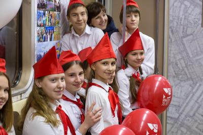 А 30 апреля состоялось совсем уж необычное событие – торжественное открытие новой экспозиции «Победители» в поезде-музее «Новониколаевск-Новосибирск» в Новосибирском метро. Этот замечательный образовательно-просветительский проект существует уже пять лет, и его новая экспозиция посвящена учреждениям – юбилярам этого года, чья история тесно связана с Юбилеем Великой победы. Один из вагонов посвящен истории нашего Дома – ровесника Великой победы. Готовились к этому долго, собирали уникальные архивные документы и фотографии первых педагогов и кружковцев.