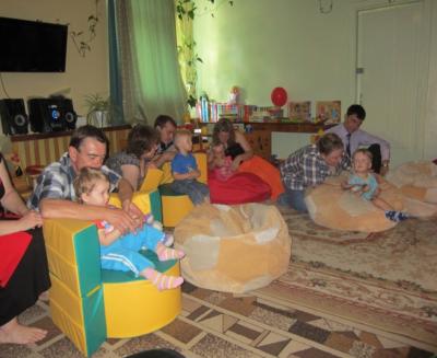 С момента поступления ребенка в наш детский сад мы приглашаем всю семью (маму, папу и ребенка) на цикл игровых занятий «Счастливы вместе». Проведение этих занятий способствует более легкой адаптации ребенка к детскому саду. Родители получают необходимые консультации по приобретению игрового материала, построению взаимоотношений с маленьким ребенком, знания в преодоления его капризов и истерик и решению многих других вопросов. Проведенные занятия способствуют сплочению семьи, проникновению в чувства ребенка, помогают родителям лучше узнать своих детей, осознать их потребности и выявить внутренние проблемы. Побывав на этих занятиях, родители лучше понимают, какую помощь они могут получить у психолога и в дальнейшем охотнее идут на контакт.