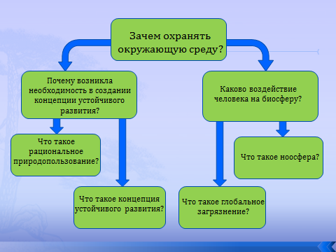 Рис. 1 Схема вопросов, отражающих проблемы охраны окружающей среды.